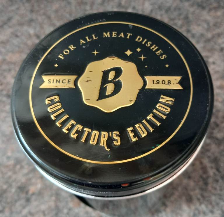 Bisto Gravy Granules Collector's Edition Black & Gold Storage Tin – Empty. Height 15cm x diameter 8.5cm. From a pet & smoke free home. Collection only.
