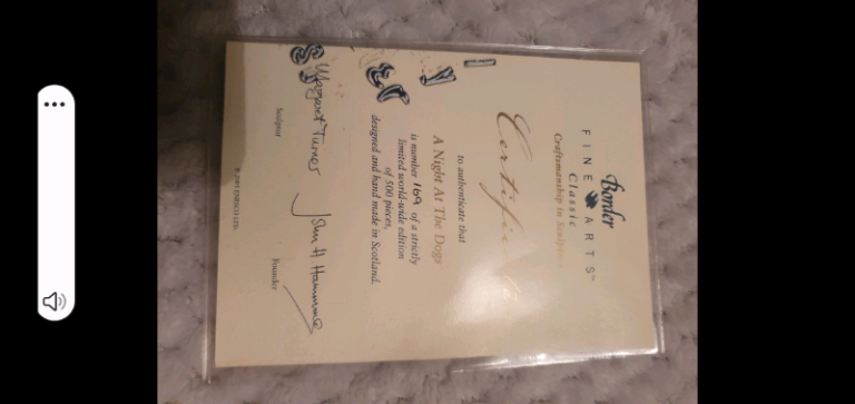 Night at the dogs model number bo905 by Margaret Turner limited edition 169/500 on wooden base with certificate .