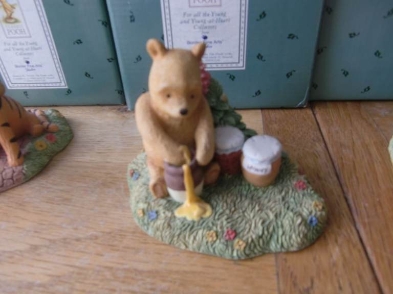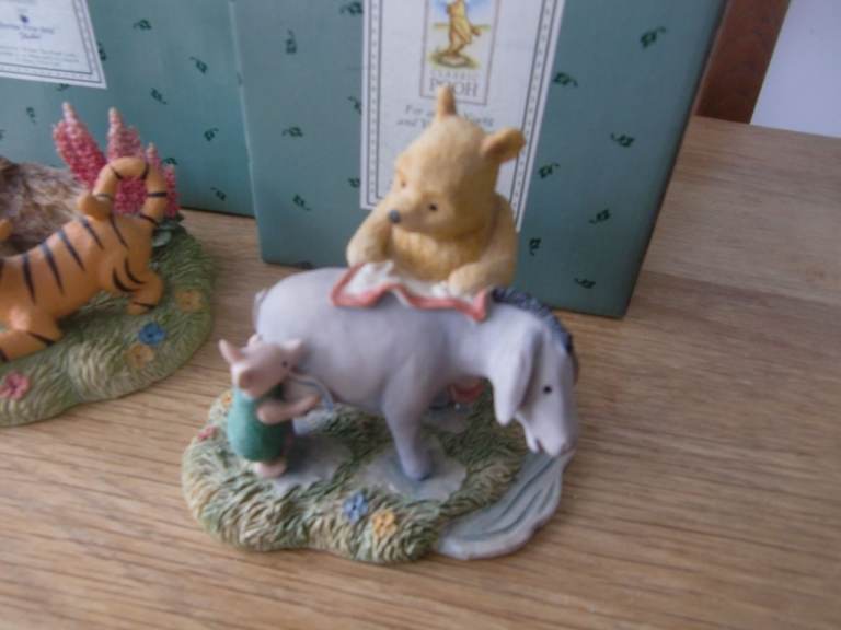 Border of fine arts. Winnie the Pooh. Pooh writing. piglet with balloon. Pooh honey and foxgloves. Pooh Piglet and Tigger Tableaux. Eeyore getting dried