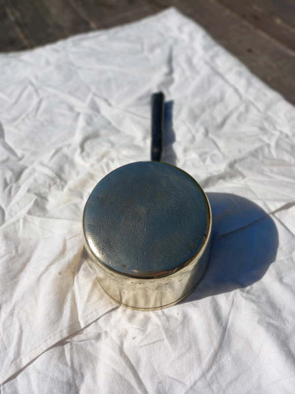 Brass pan 6 inch diameter and has a 3 inch depth inside pan