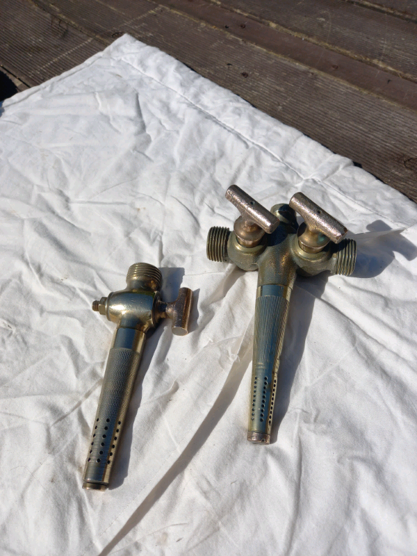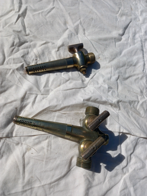 Two brass taps one double 8 Inches long and 5 inches wide and single is 7 inches long