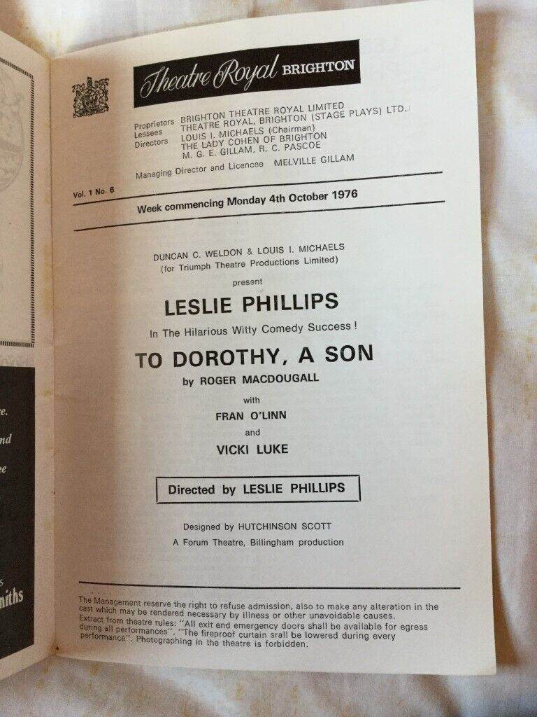 Featuring Leslie Philips ‘To Dorothy a Son’ with cast information for October 4th 1976. Also story synopsis and lots of local adverts of the time. Quite good condition. Bargain only 50p.