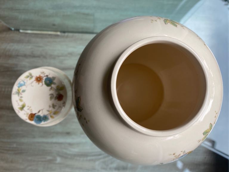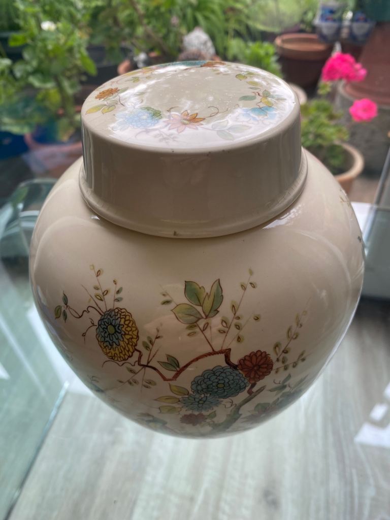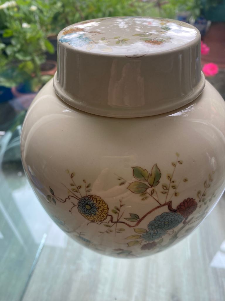 Collectable Exotic Bird of Paradise & blossoms large jar with lid.