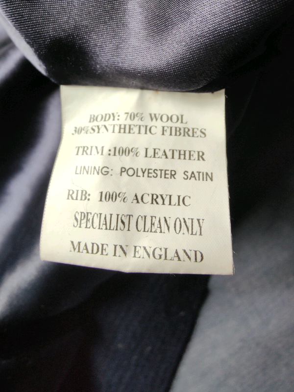 Has been worn, has some small scuff marks on the sleeve near the wrist area