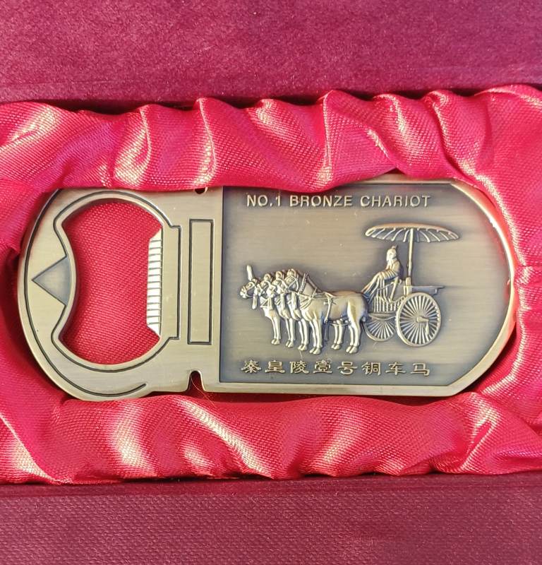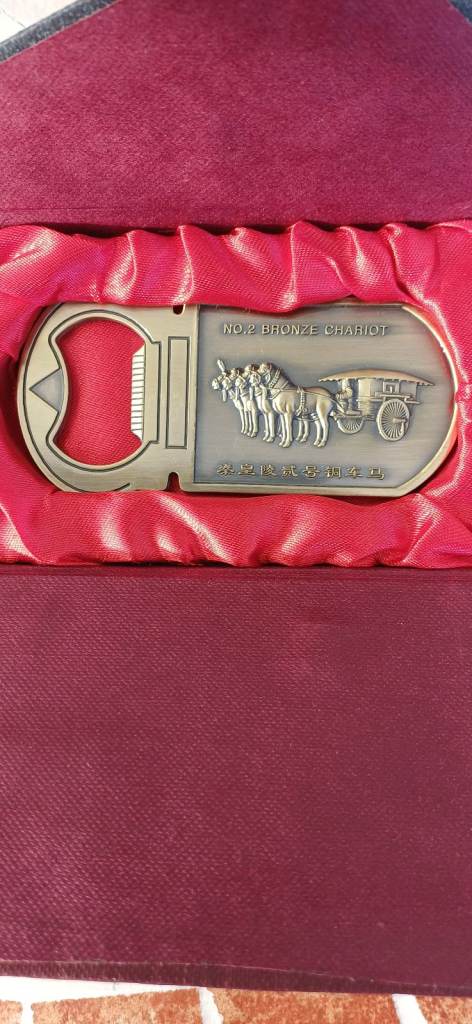 Chinese Bottle Opener. In presentation Box. Double sided with No1 Bronze Chariot on one side and No 2 Bronze Chariot on the other. Collection only from South Woodham Ferrers
