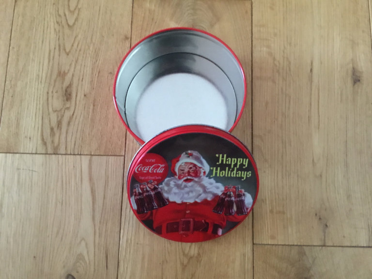 Beautiful Coca Cola circular tin , Happy Holidays.