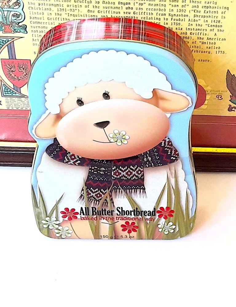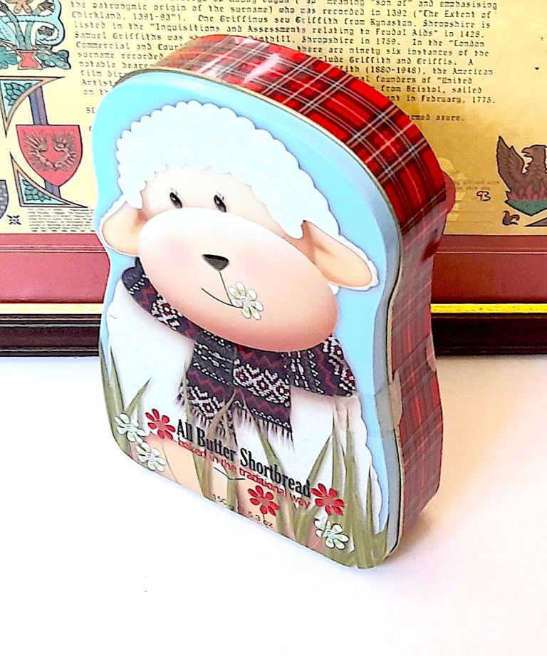 COLLECTABLE CAMBELL'S TIN - A SHEEP SHAPE with TARTAN SIDES - 20 x 14 cm GOOD