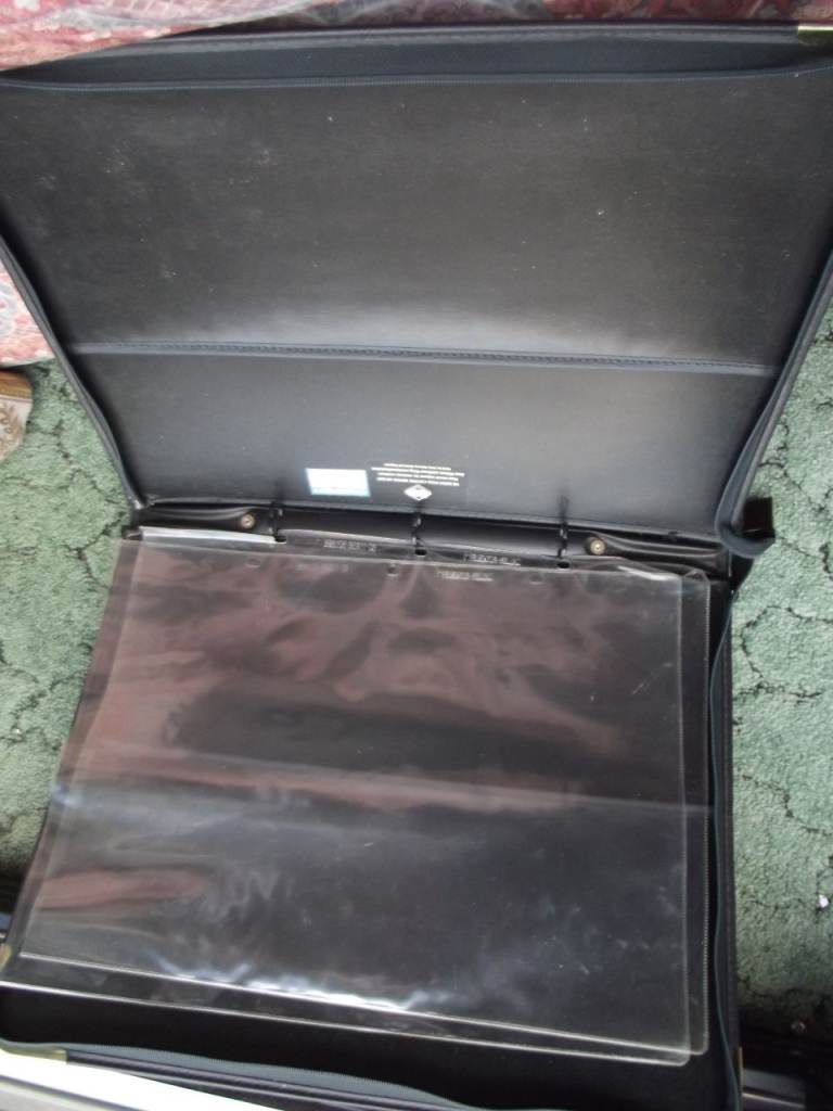 This is the one with the zip around and rings inside to hold the Transparent sleeves. It is in good usable condition. Suitable for someone doing an Art Course to carry and display their work.