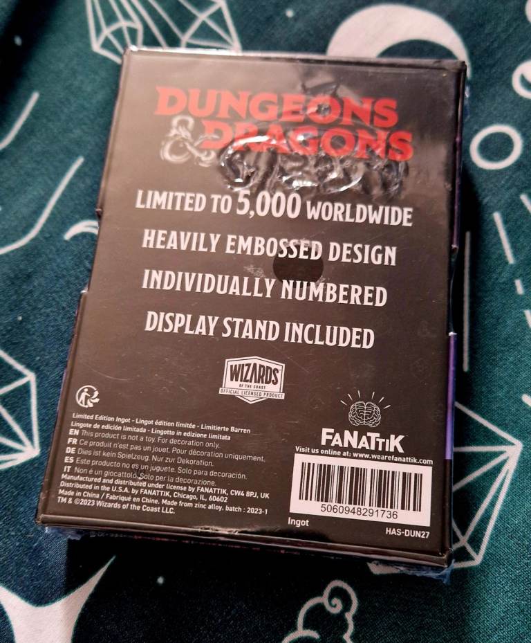 This Dungeons and Dragons Official Ingot is limited to 5000 worldwide so it adds that extra level of interest for a collector. It is in new condition and still has the cellophane on. Price includes UK p&p. Thanks for looking!