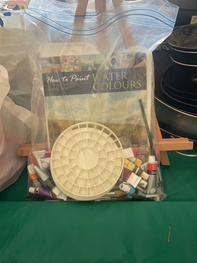 House clearance | wooden artist easel for sale & a bag of miscellaneous watercolours