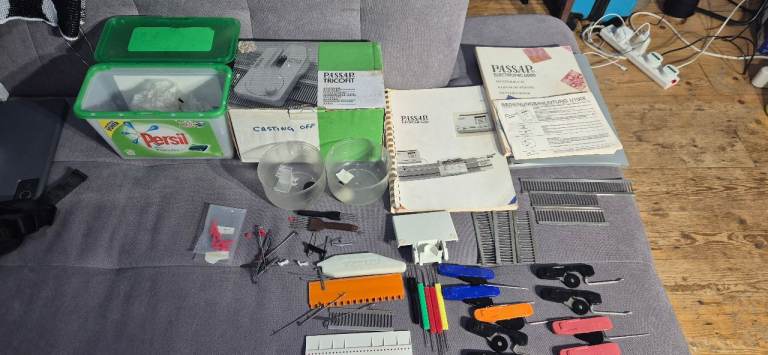 Sadly due to lack of space I have had to downsize. I am selling my lovely Passap E6000 Knitting Machine with Electra 3000A motor, accessories U100E transfer carriage, Tricofit cast off device, cable link for Designaknit, Manuals.