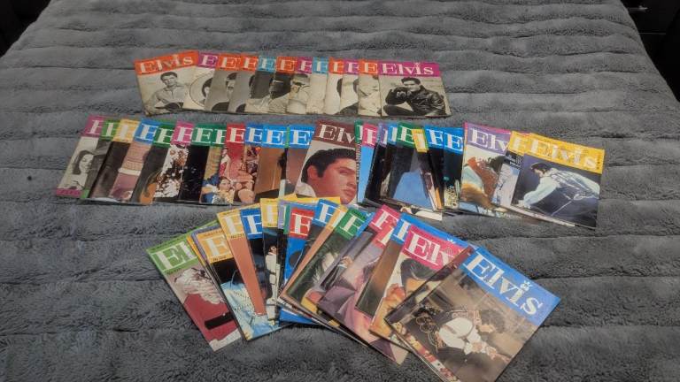 These Elvis monthlies range from the first few being 2-11 (1965) up to number 329. There are 71 in total. Fair condition for the early one's. The rest of them are good.