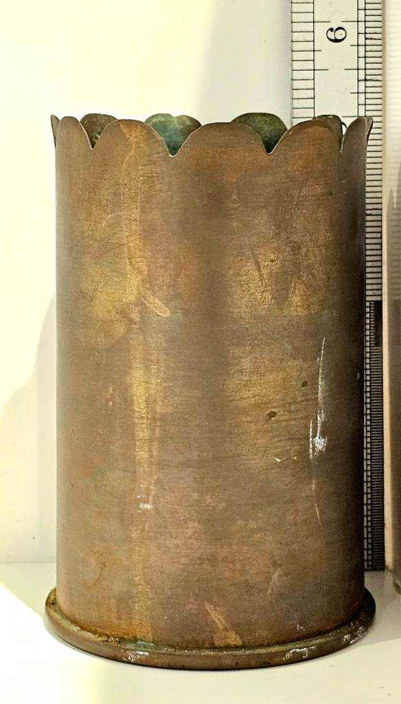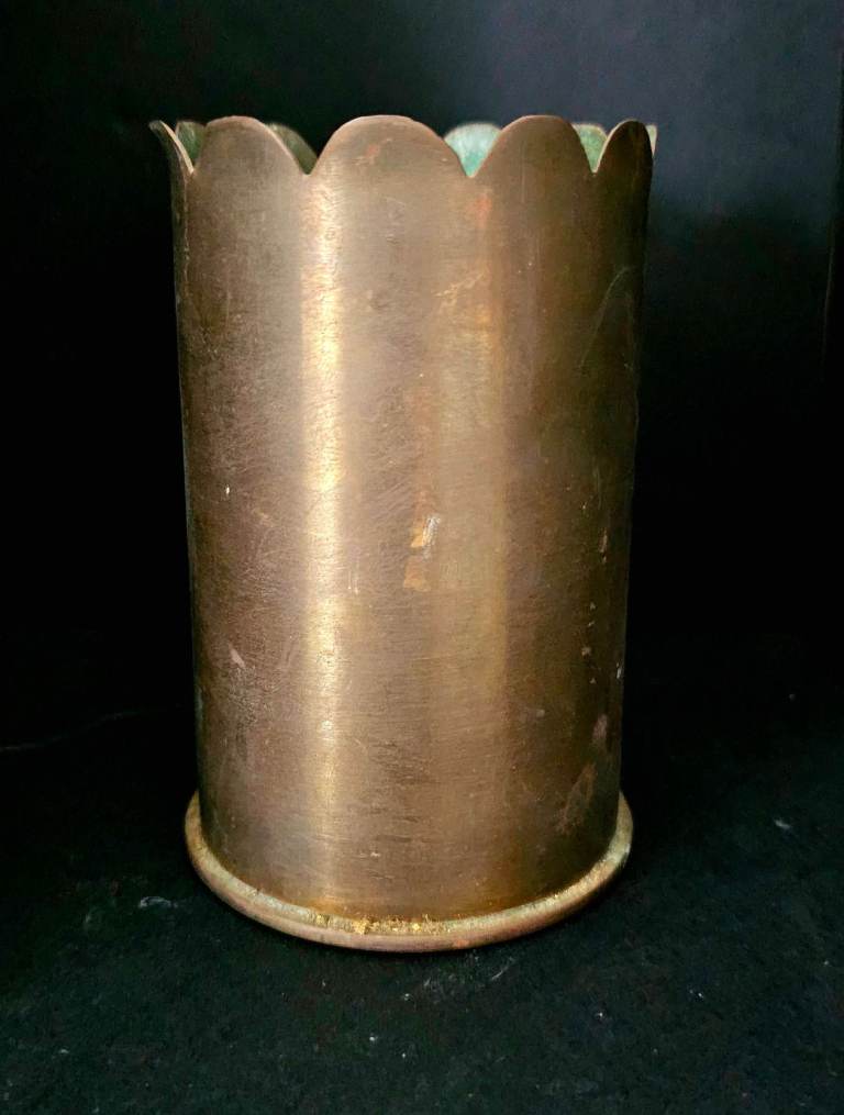 Flower face WW1 trench art shell.