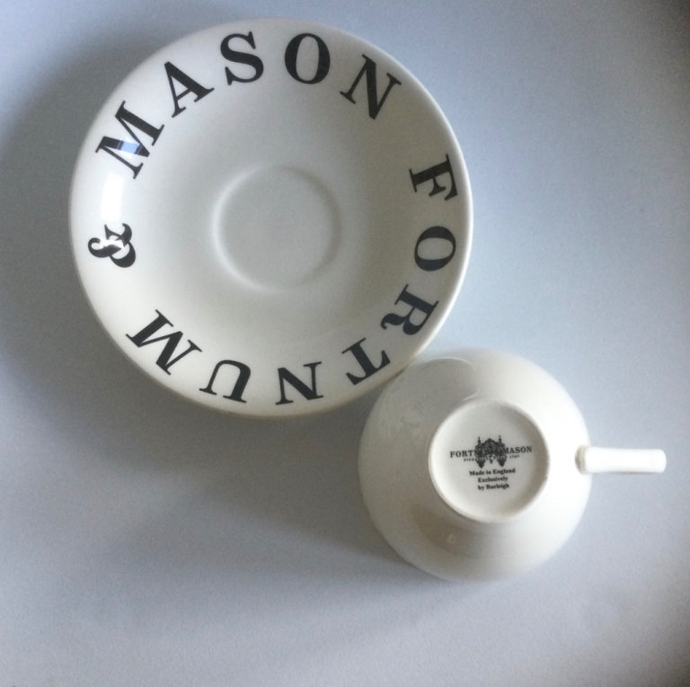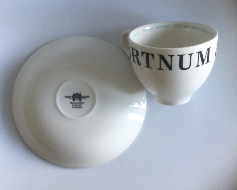 Fortnum and Mason F & M small teacup and saucer made by Burleigh displayed only