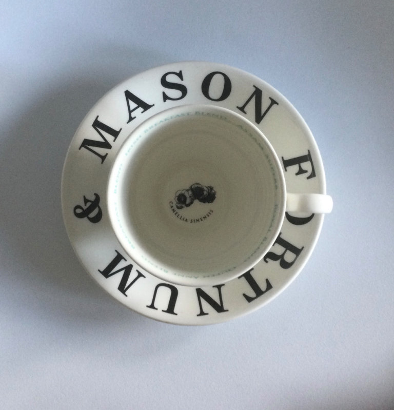 Gorgeous little Fortnum and Mason teacup and saucer in excellent, displayed only condition. Has names of different teas around the inside.