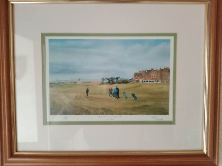 Have 6 framed golf course prints, in good condition. Size H 31cm, W38cm.