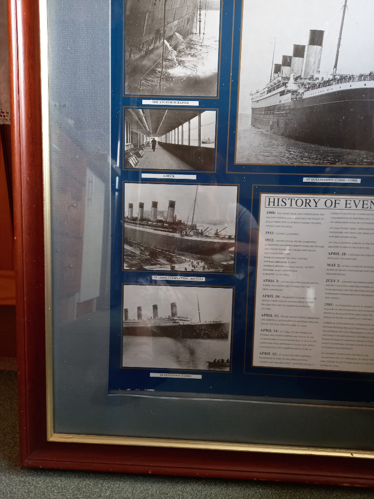Framed 'History of Events' R.M.S. Titanic