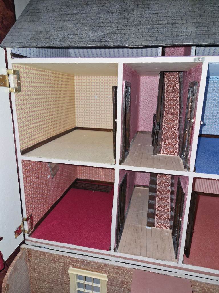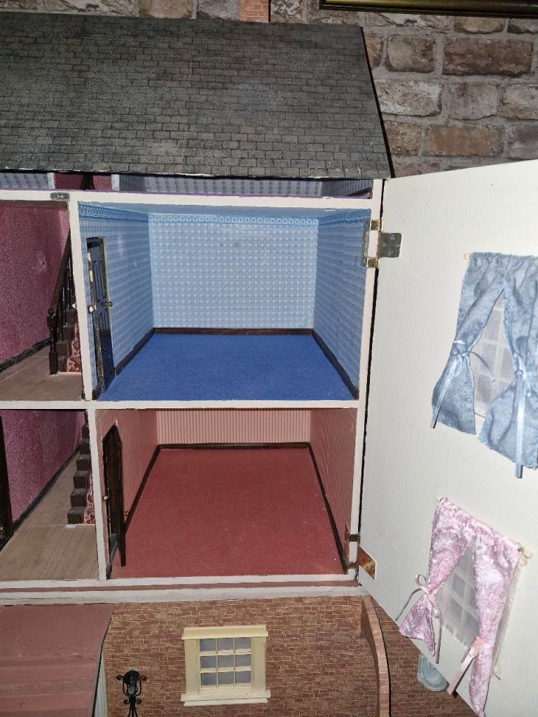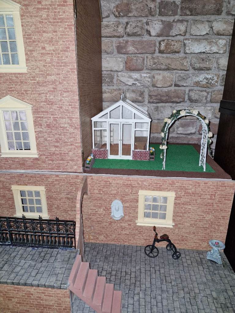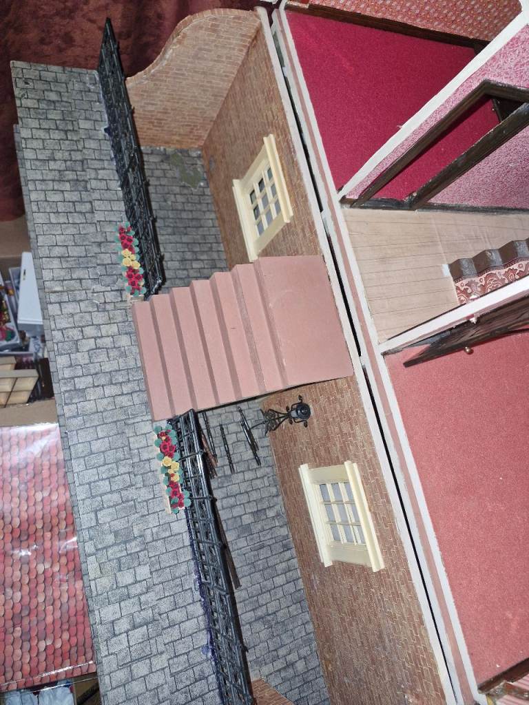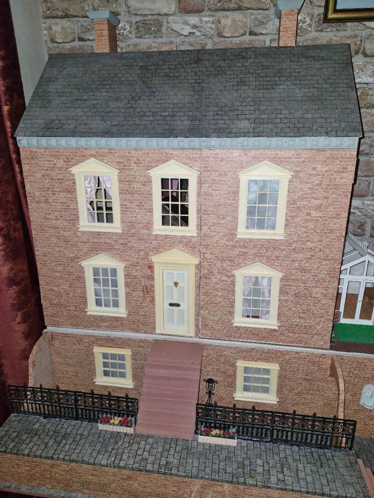 Unique Georgian doll house with courtyard, garden, conservatory and basement. 10 rooms in total. Has original wooden doors and stairs. Basement needs decorating. Very big house. Comes with a bag of furniture 1/ 12 scale. Great project for a hobby.