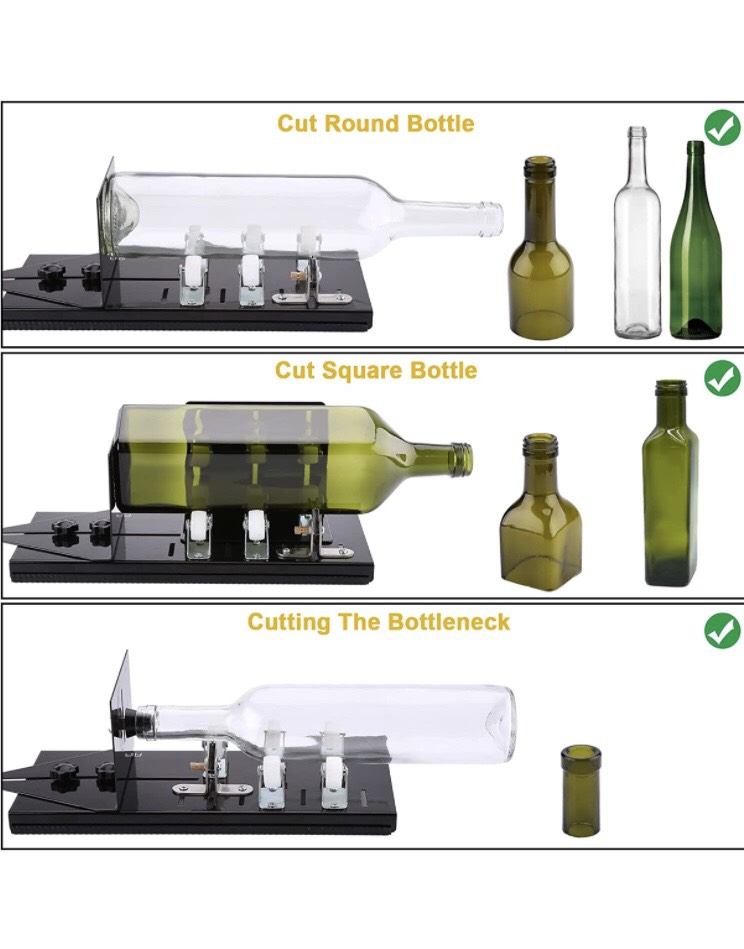 SUITABLE FOR MOST GLASS BOTTLES: It can be applied to round bottles, square bottles and bottle necks of various dimensions and shapes. For wine, beer, whisky, champagne, water or soda. You can cut any bottles you prefer with this amazing glass bottle cutter unless the bottle is engraved with embossed pattern.