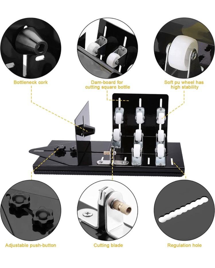 A 95-degree detachable lateral plate for this glass bottle cutter, which enables you to cut bigger square bottles of 750ml or above. Additionally, there are 8 specially-designed supporting wheels to help you better stabilize the bottle and cut the bottle in a more accurate way.