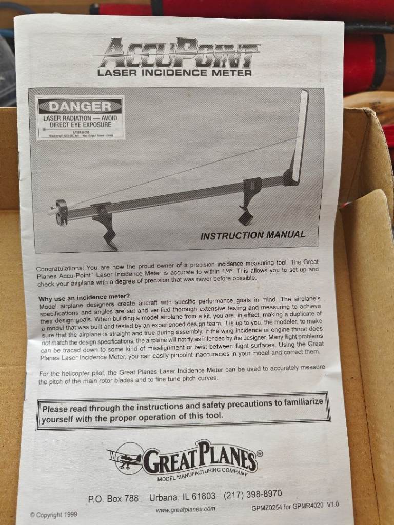 Great planes Accupoint Incidence Meter for RC planes, balsa building, F3a etc.
