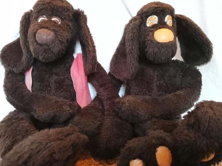 These two dogs were handmade in the 1990's and have been keeping us company since then.