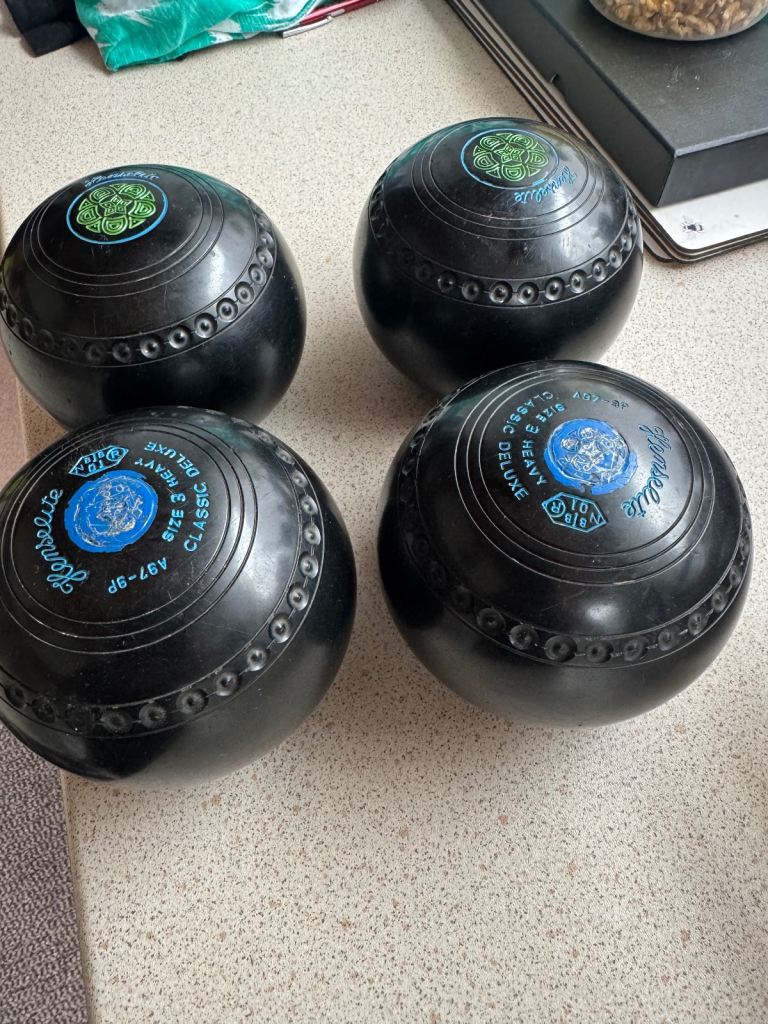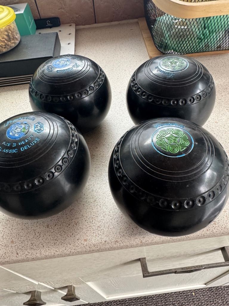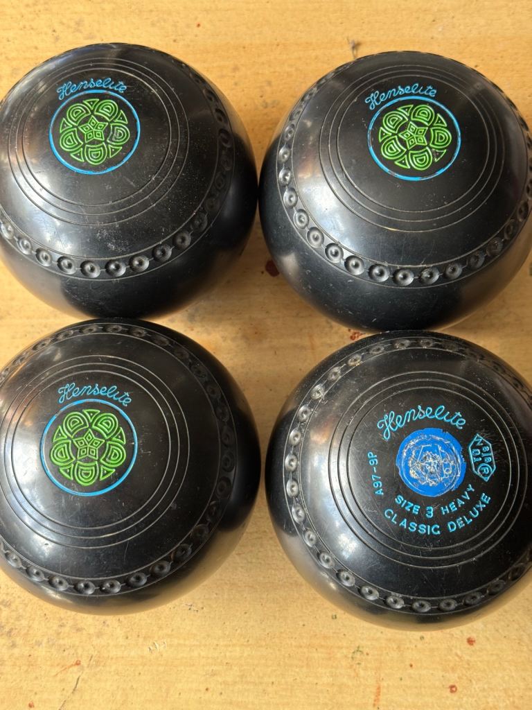 Henselite pro bowls set of four size three heavy deluxe bowls with bag used condition