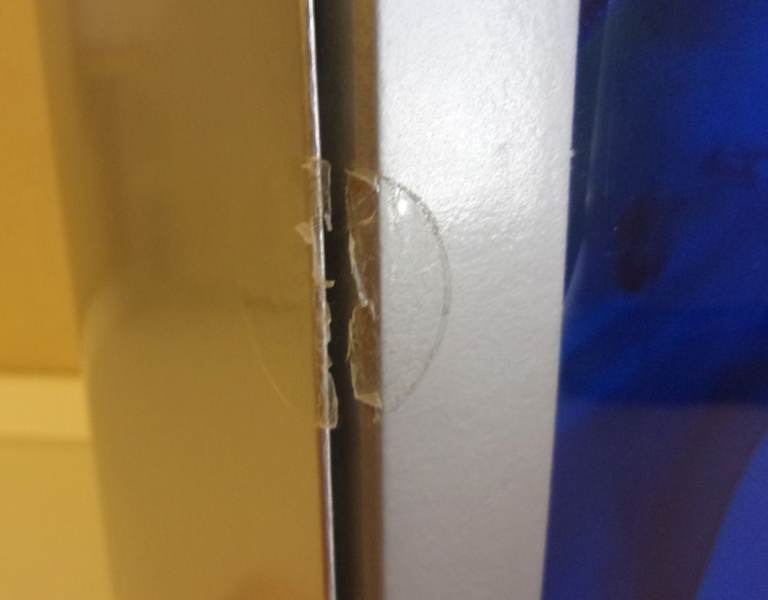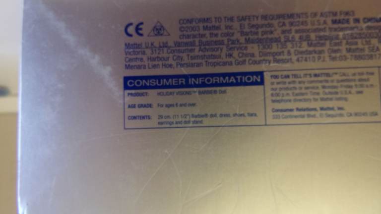 Doll never removed from box, displayed on shelf out of sunlight very good condition, dolls box has some very minor wear but very minimal! Three is s mall wrinkle top left corner 9see photos above & video link below). some sligth scuff marks bottom of box again see photos & video, and one of the little round tapes has dried out and snapped on one side seen in last photos and video below.