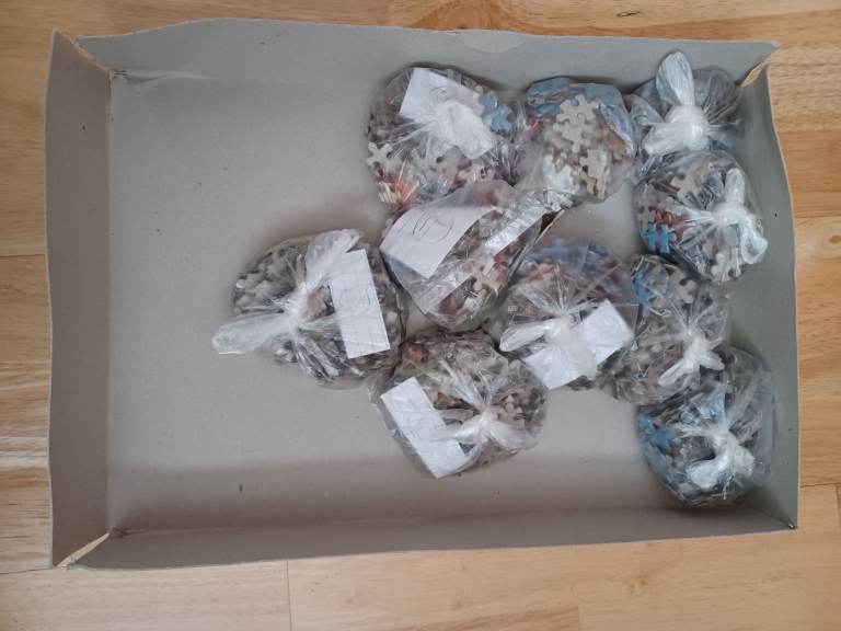 2 boxes are a little bit damaged but all puzzles are complete.