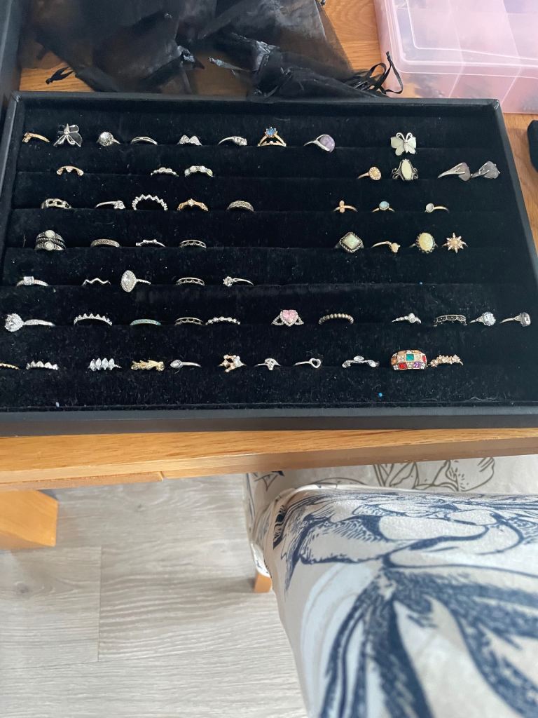 2 trays of various style and size costume rings