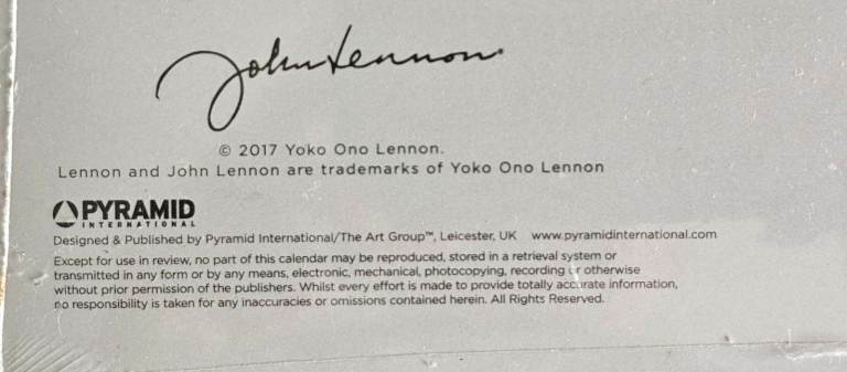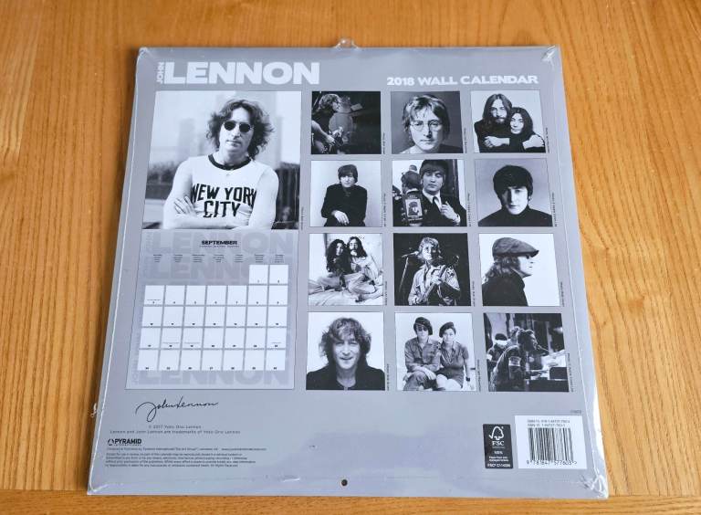 John Lennon 2018 Sealed Wall Calendar.