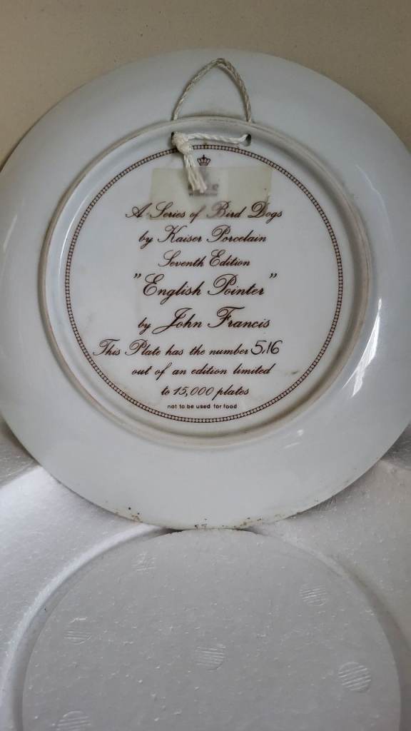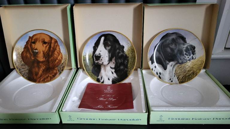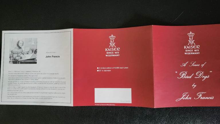 Kaiser series of Bird dog porcelain plates. Full set of 8. By John Francis