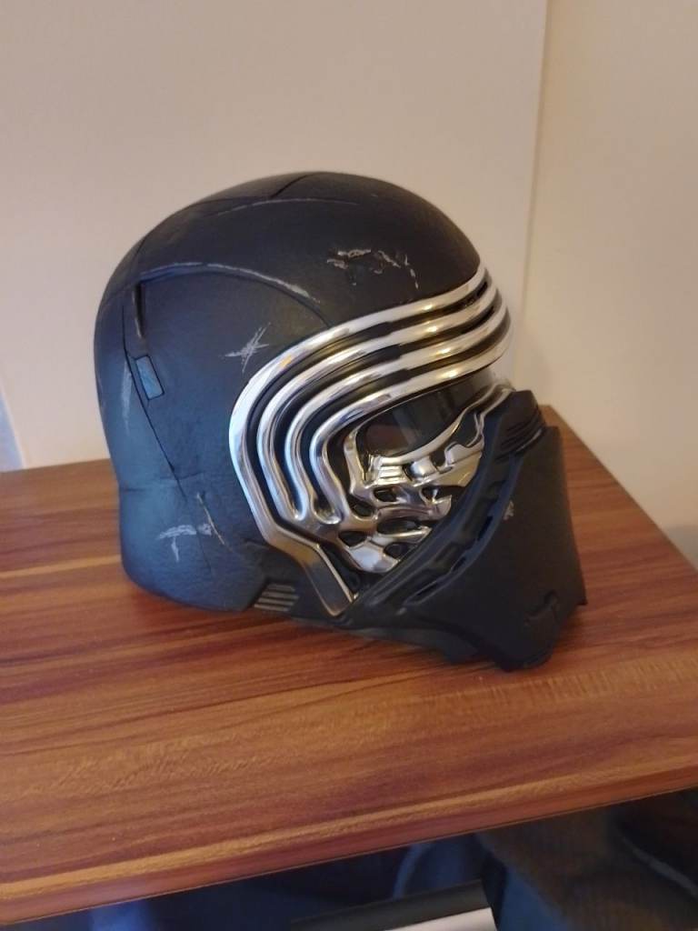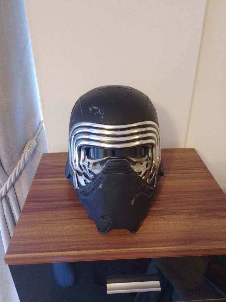 Hi kylo Ren Hasbro black series cosplay voice changer helmet collectors item in very good condition just put new batteries in it no box sorry have Al look on eBay at the prices there going for I know it's eBay prices and will only go up in price can deliver within reason of Falkirk see my other adds thanks this is not a toy for display or cosplay