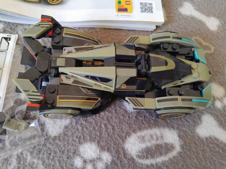 There is 1 piece missing on the back of the wing but it does not affect the car to be played with in anyway. Other wise it has only been built once.