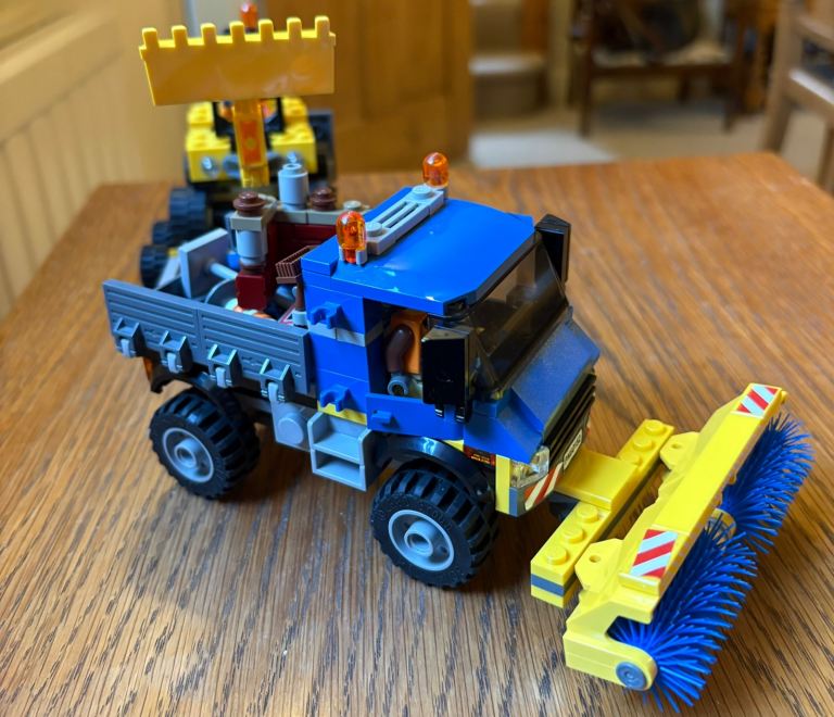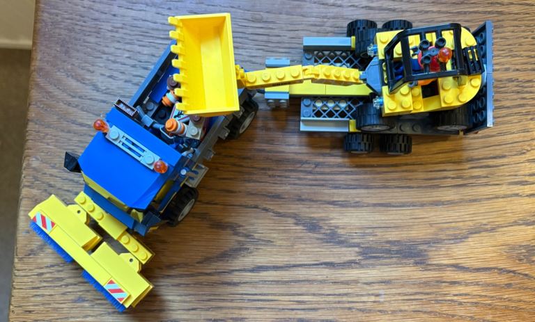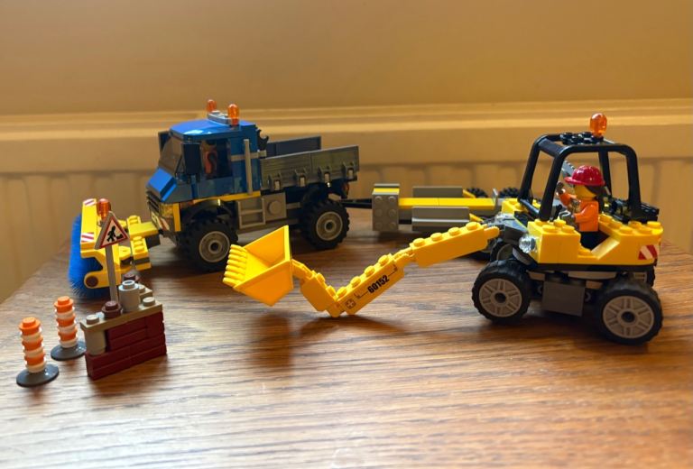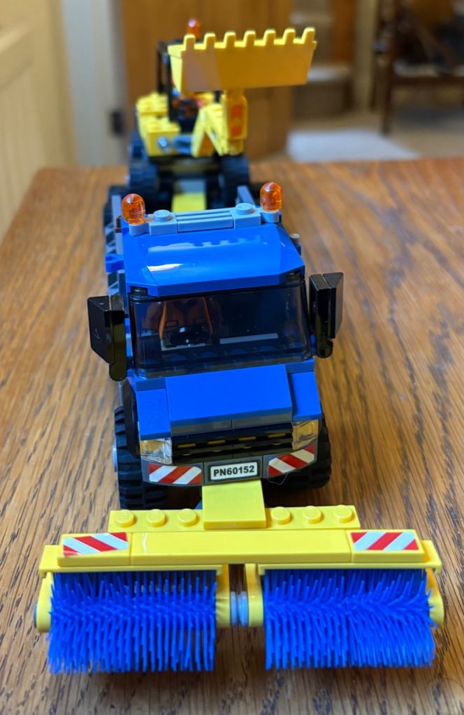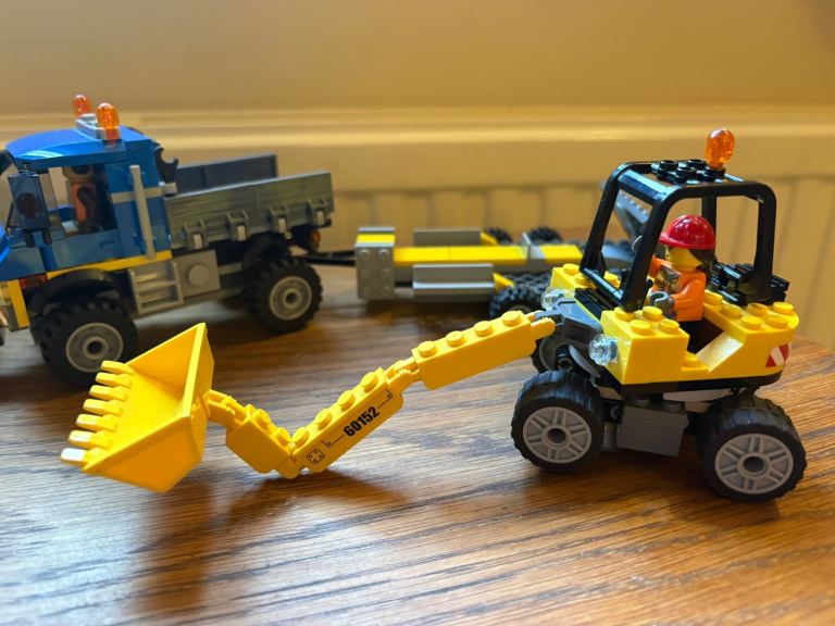 Keep the LEGO City streets clear for traffic with the help of the city work crew and their Sweeper & Excavator, featuring a truck sweeper with spinning brushes, various work tools and detachable trailer, an excavator with movable arm and shovel bucket, rotating body and opening cage, a street sign, cones, brick wall elements, and 2 minifigures.• Build a street sweeper with spinning brushes, and an excavator with movable arm and rotating body!• Includes 2 city worker minifigures• LEGO City building toys are compatible with all LEGO construction sets for creative building• Truck with sweeper measures over 3” high, 6” long and 3” wide. Trailer measures over 1” high, 6” long and 3” wide. Excavator measures over 3” high, 5” long and 2” wide• This set has been made up to check all is in order, it would appear to be complete to the best of my knowledge. Full instructions are included but no box.