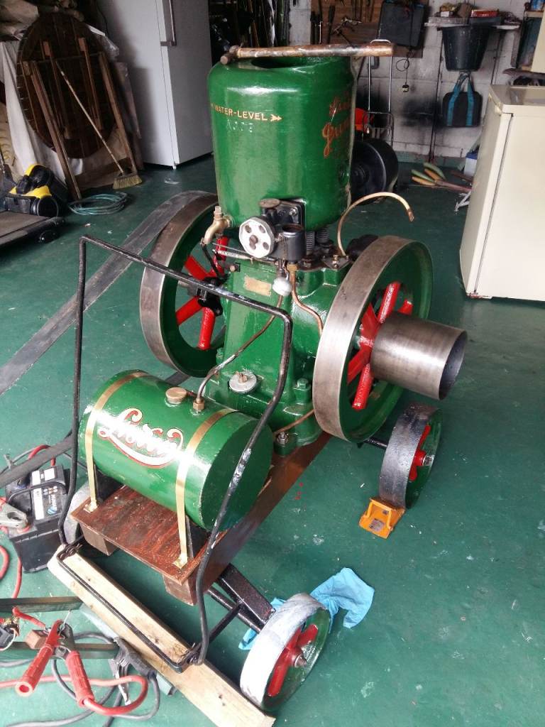 Ive restored classic cars for years as a hobby .However,due to age and health problems I did my last car this year and decided to step down in work needed ,so I bought a Lister Junior stationary engine I found from the Lister club ,it was made in July 1928 , so nearly 100 years old .It ran well , but obviously hadnt been cleaned for years . so I partially stripped it down and while down I sent the magneto away to a specialist for an overhaul .The spark on it is now better than ever . The trolly is steerable and is easy to move around . After spending hours rebuilding the trolly , which needed some of the wood replacing ,I removed flywheels , tank etc to give it a good sanding down and repaint . It now looks the part . It comes with the original starting handle . I just finished the restoration when I was taken into hospital . but I have to return sometime this spring , to have an operation In the meantime I can`t do much . BECAUSE OF THIS I HAVE BEEN UNABLE TO WORK ON THE ENGINE ,HOWEVER THERE IS A VIDEO OF IT RUNNING BEFORE I STARTED THE LIGHT RESTORATION The plan originally was to sell this and look for an open crank engine to restore . However I have to put this on hold until Im sorted , which may be some time ahead , so I ,may as well let someone else enjoy the engine . THE JIG CONNECTED TO THE ENGINE , IS SOMETHING I BUILT TO START IT AS I DIDNT HAVE THE STRENGTH TO TURN IT OVER THIS IS NOT FOR SALE . Hopefully this will do for the next engine I restore !!!. due to circimstances I would not be able to help loading the engine , it moves well on the trolley . I have included a video of it running as bought and a photo of it as bought A friend,started it and took the video . I live in the b45 area CASH ONLY ON COLLECTION