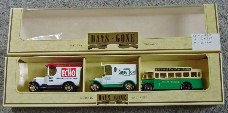 Lledo diecast Dorset Echo vans & bus set of three MIB. DG50-82, DG06-609, DG17-213 and clearly shown in the photo.