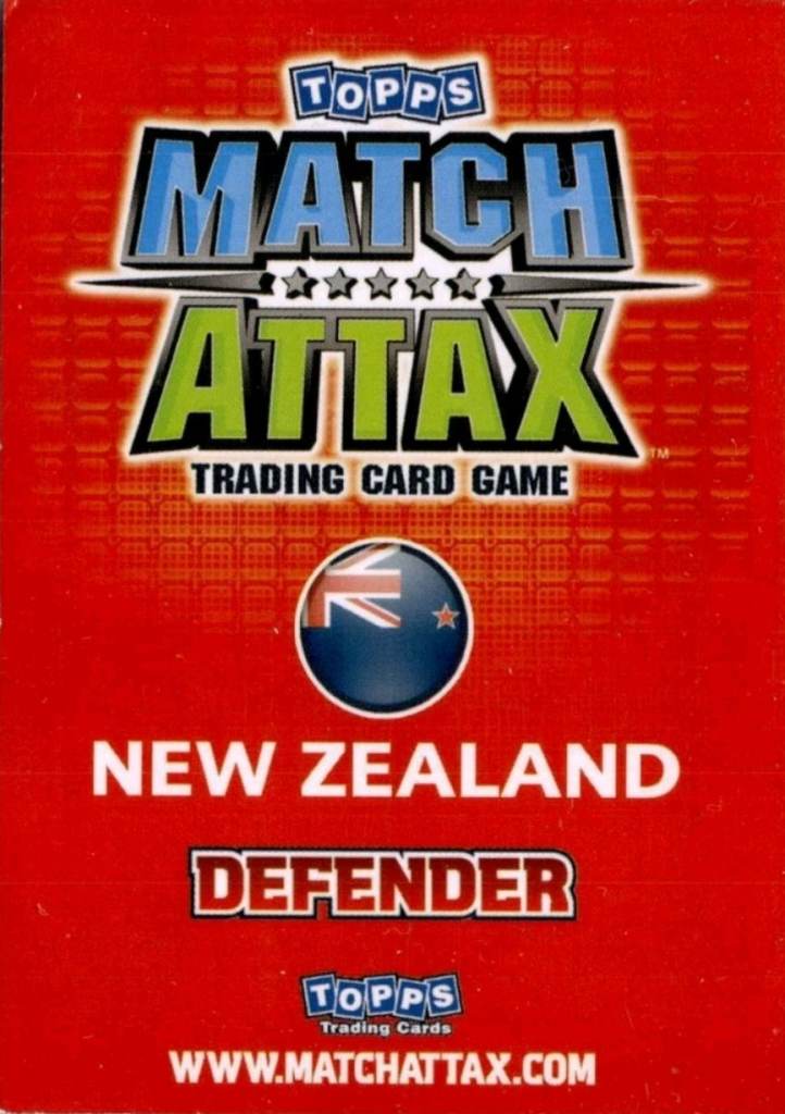 Posting for 5+ yearsMatch Attax Card 2010 Ryan Nelsen New Zealand Defender Star Player Silver Foil