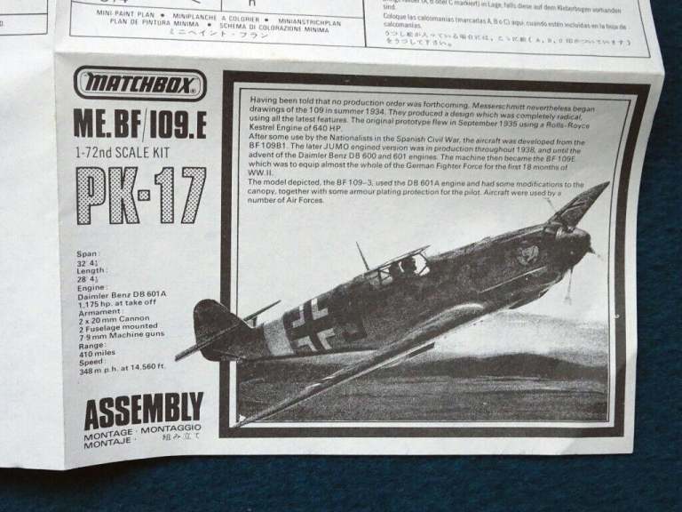 Matchbox - Messerschmitt - PK-17, ME.BF/109.E - Instructions Sheet ONLY