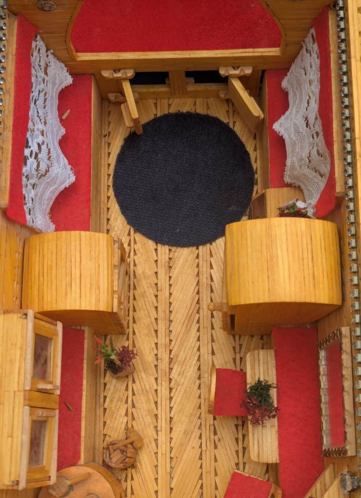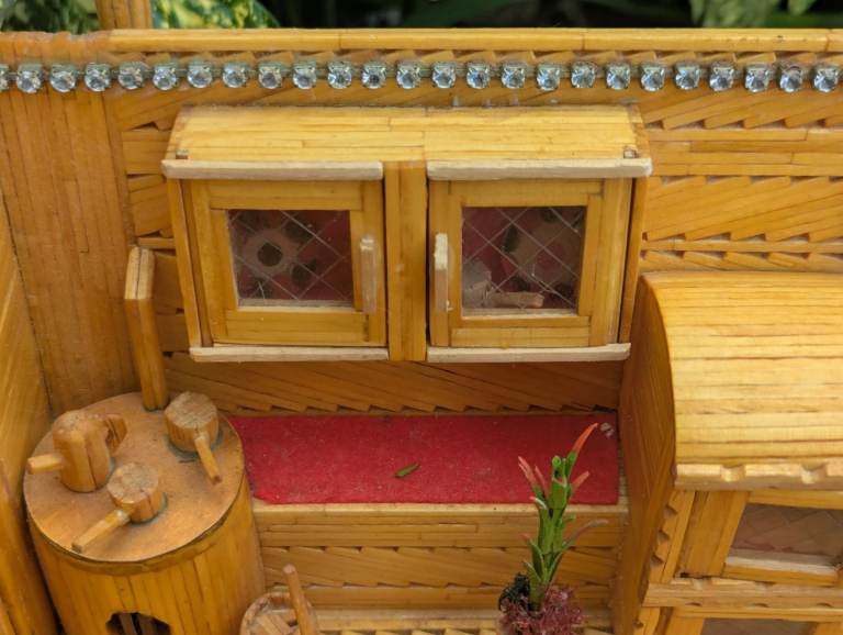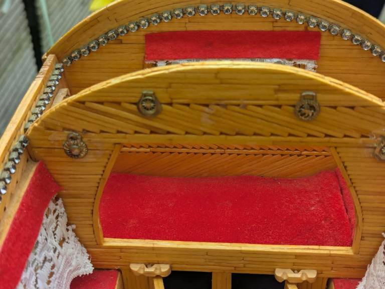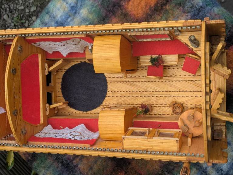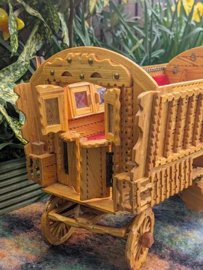 Matchstick gypsy caravan, lovely decorative item, interior as pictured, clean and tidy example, decorative, 16.5 inches wide, 8 inches deep, 10 inches high, roof is removable, collection from Wolsingham x