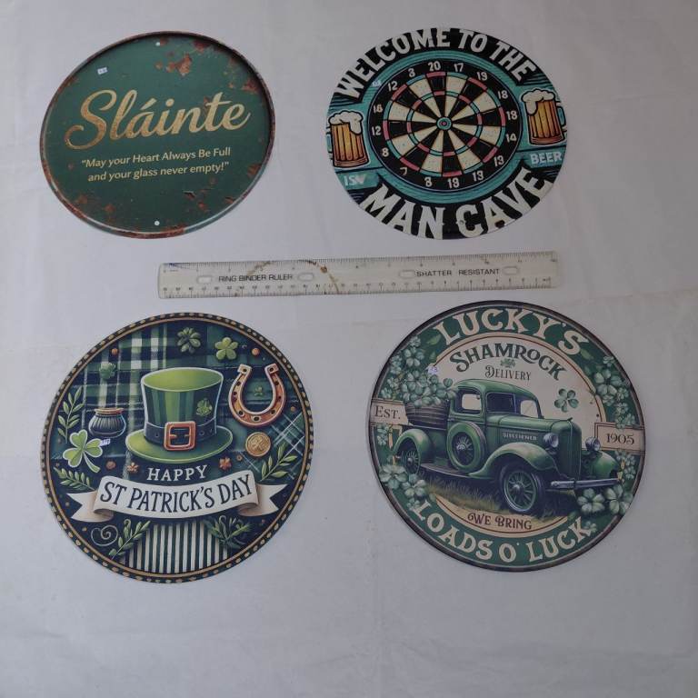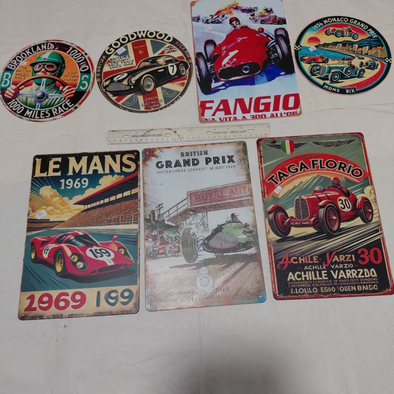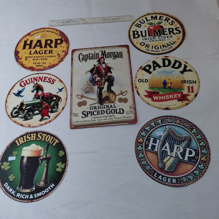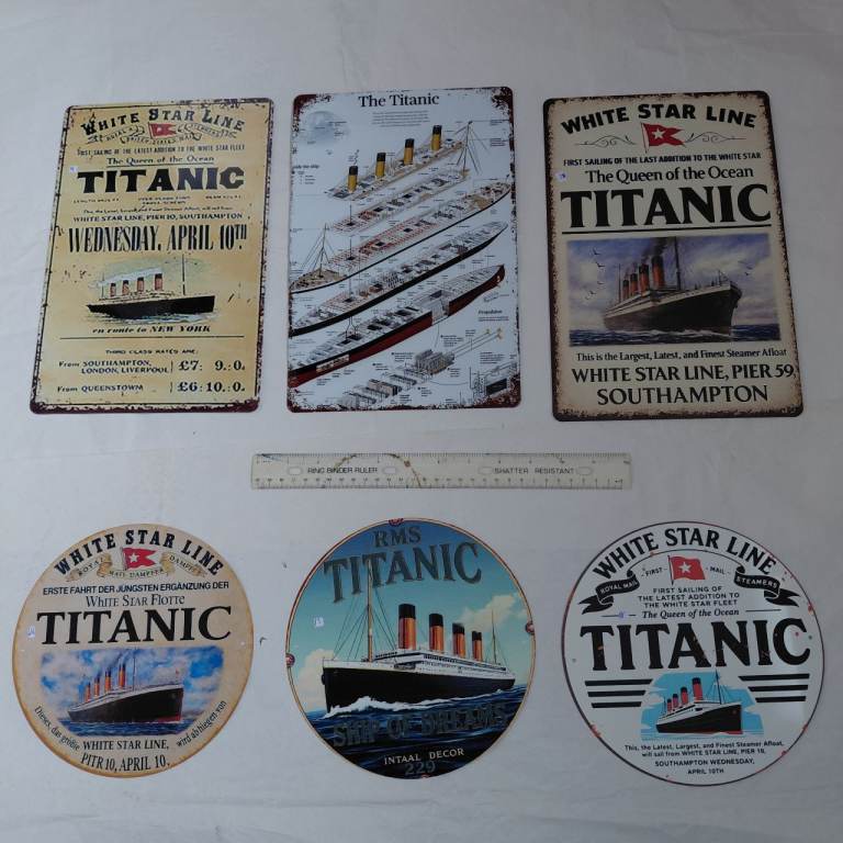 LARGE RANGE METAL WALL SIGNS, FROM VINTAGE OIL COMPANIES AND CAR, TO MOTORBIKE, TO TT RACING, TO TITANIC, SHAMROCK, MAN.UTD, LIVERPOOL £10 EACH, 5 FOR £40, OR 10 FOR £70. IDEAL FOR MAN CAVES, GARAGES, SHEDS OR WALL DISPLAY