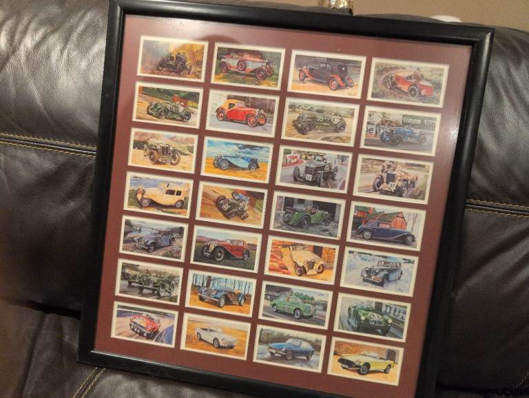 Collection of cigarette cards for many of MG cars from the MG1 to last of the MGB GT.