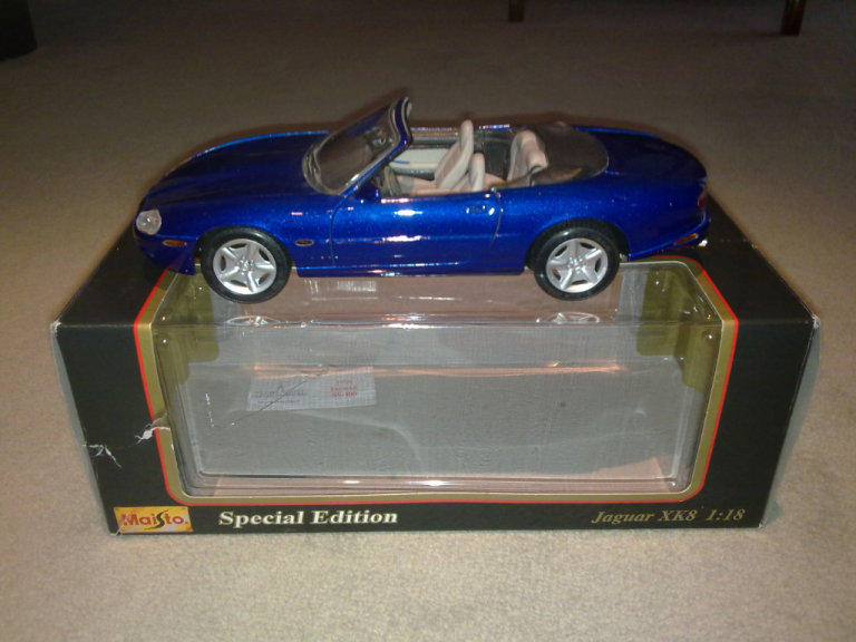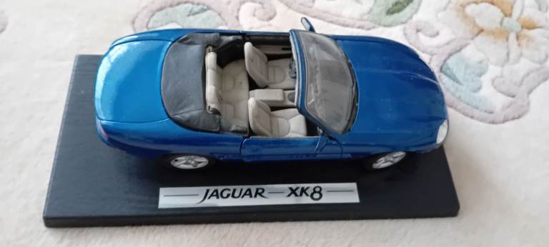 XK8 MODEL IS IN BLUE & XK180 IS ALSO BLUE - COME WITH THE DISPLAY STAND & THE ORIGINAL BOX - ONE SMALL TEAR ON XK8 BOX (SEE PICS) BUT IF YOU WISHED TO DISPLAY IN THE BOX THE TORN SIDE COULD BE PUT AT THE BACK & HIDDEN. OTHER BOX IS FINE