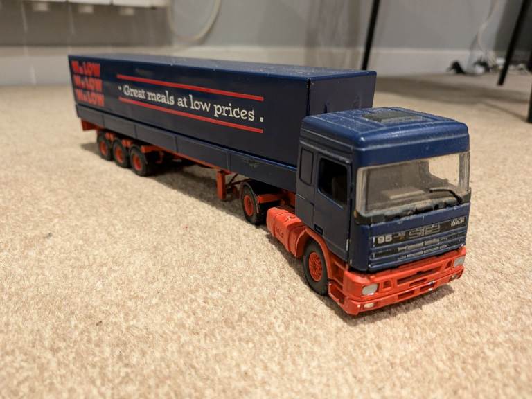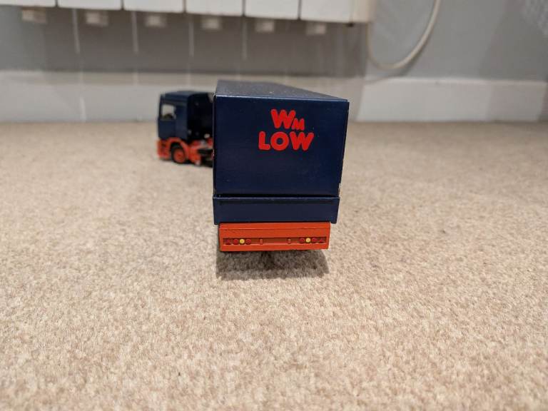 Tekno Daf 95 truck in old Wl Low livery. Came from their head offices when they closed in 93/94. Missing a couple wipers now and couple of paint chips but otherwise good condition. £100 Cash and Collection only. Carnoustie area