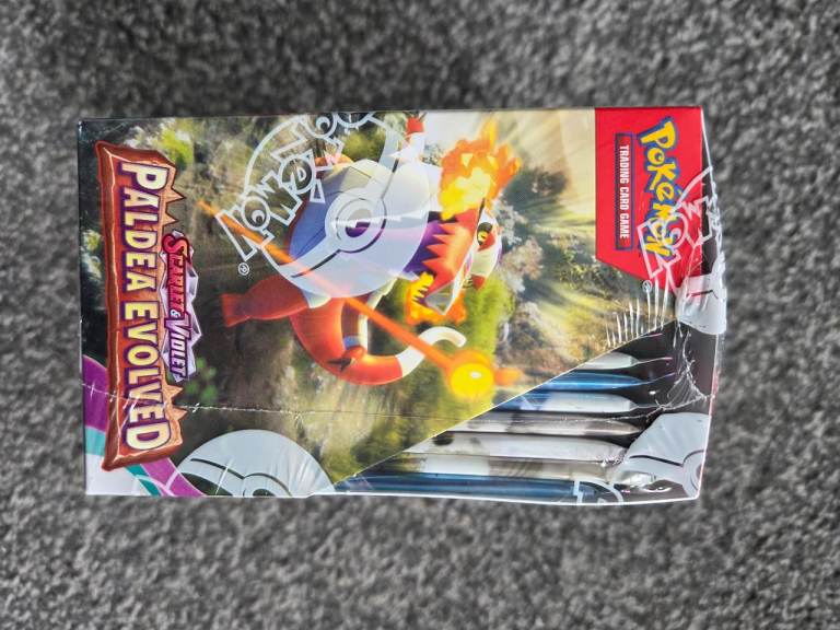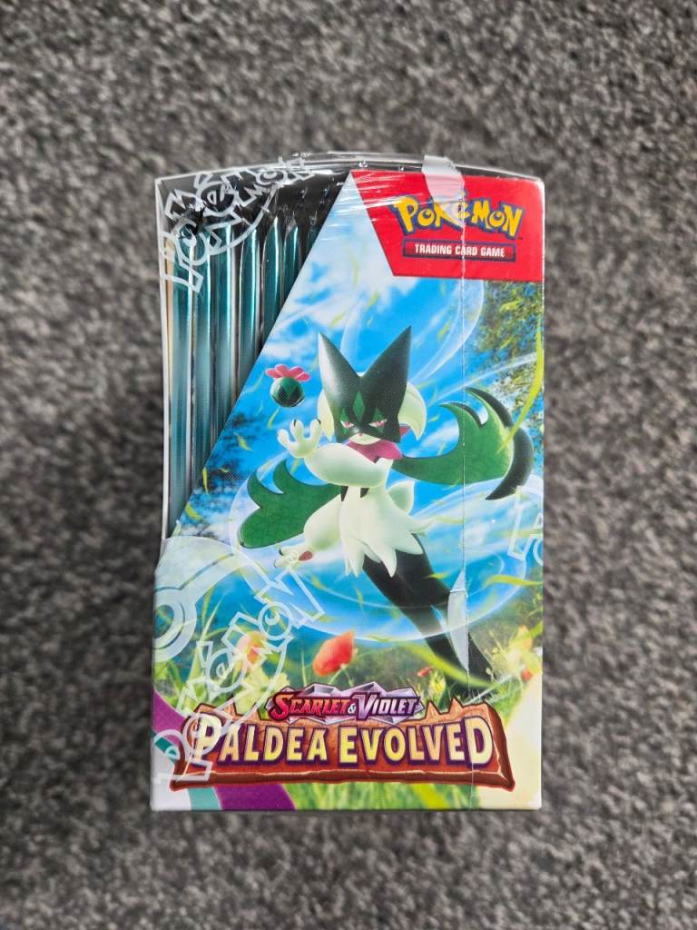 Unopened Pokémon Trading Card Game: Scarlet & Violet Paldea Evolved booster box.