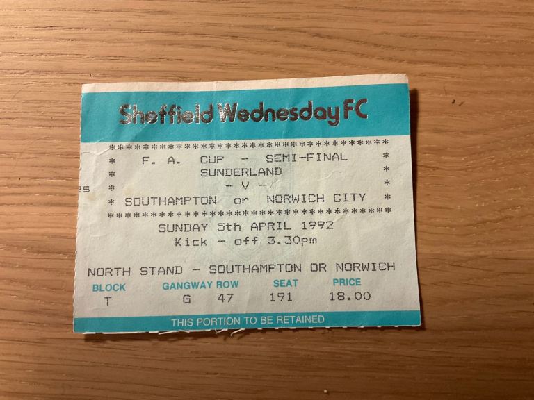 Norwich Sunderland FAC SF 05/04/1992. Match Ticket Stub included