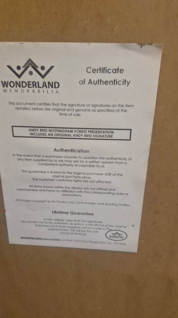 C.o.a from Wonderland memorabilia