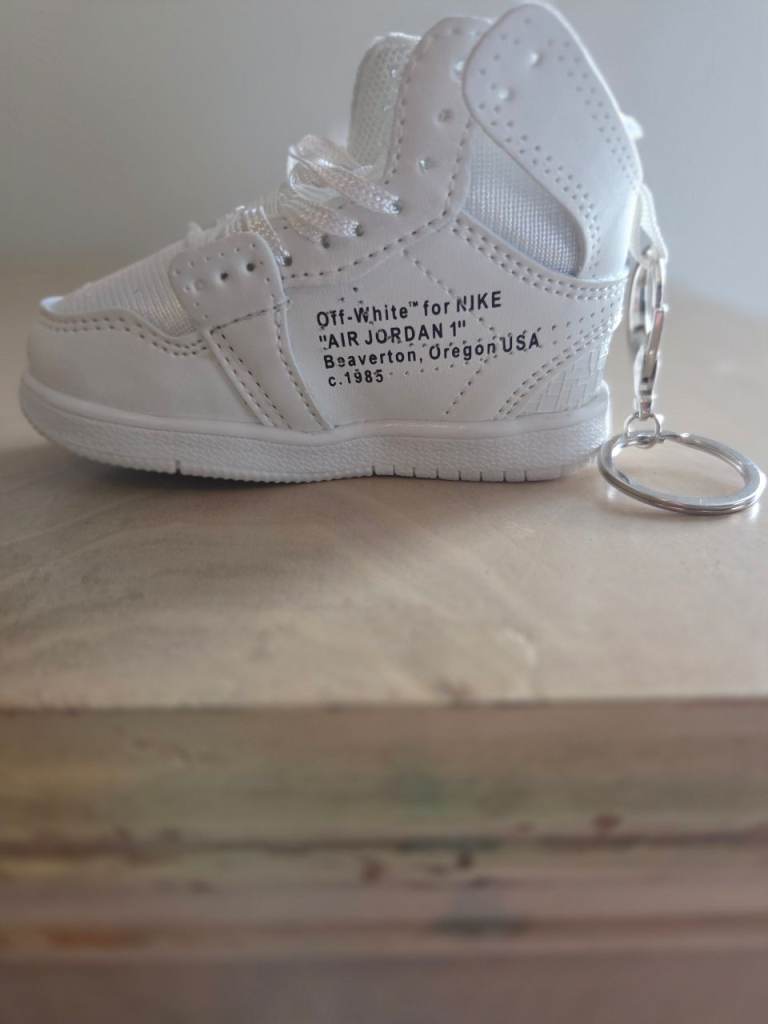 Brand new mini sneaker keyring, inspired by the iconic Off-White Air Jordan 1 design.