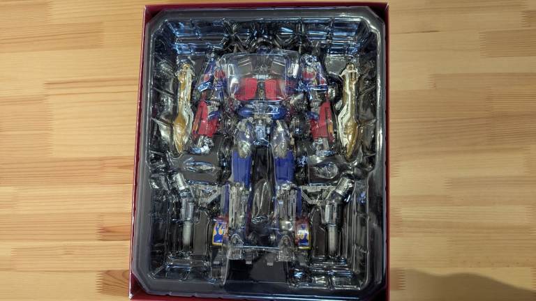 This is the very rare Optimus Prime which is one of the most accurate released figure of the character that is still able to transform into truck mode. It comes with box, instructions and all accessories (x2 swords, x2 cannons, x1 Matrix of leadership, alternate left/right wing mirrors (silver or gunmetal grey), alternate head, and the Dark of the Moon abdomen/sternum upgrade kit.