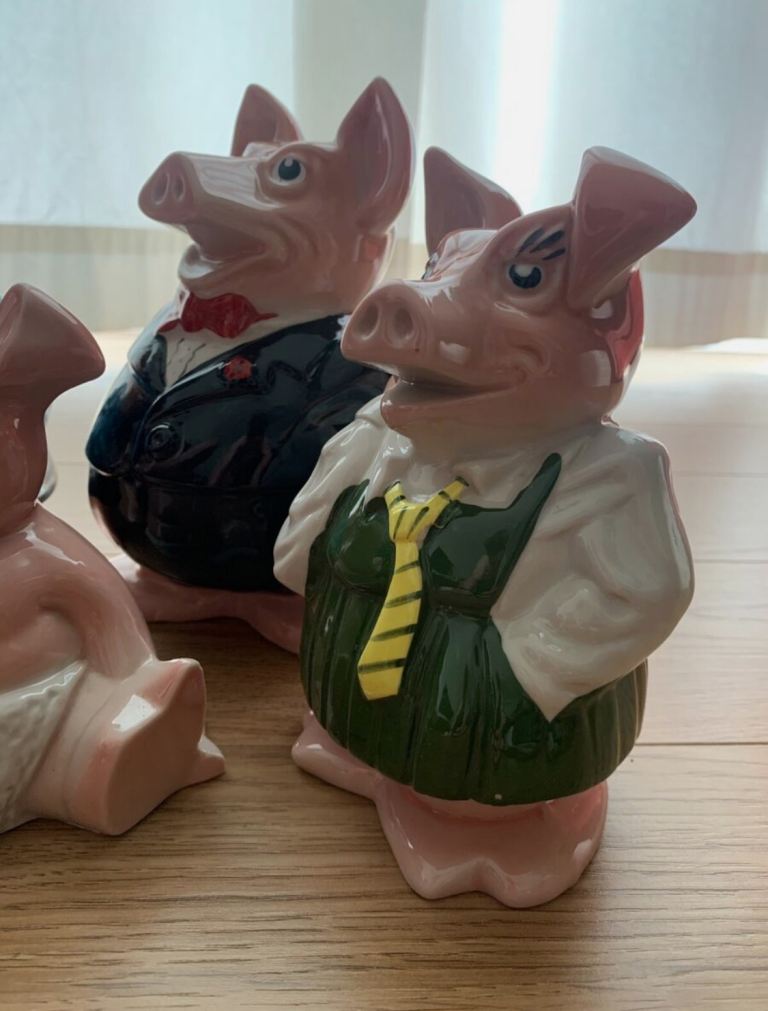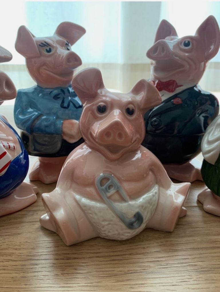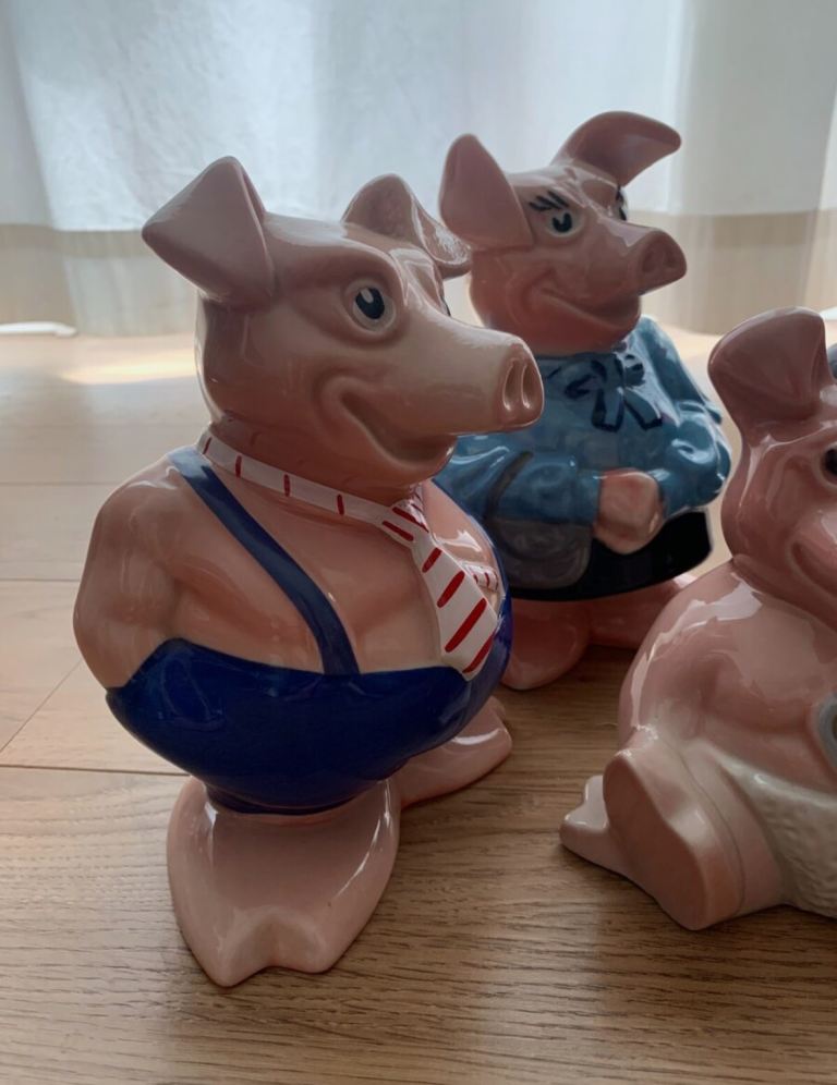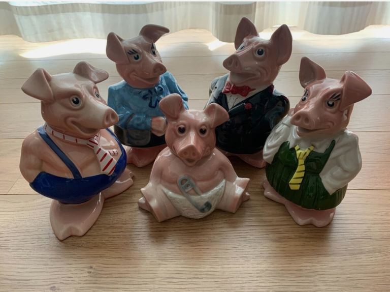 Each pig is in fantastic condition – no chips whatsoever. There is some very minor discolouring on the bases. Each pif has their original NatWest stopper.